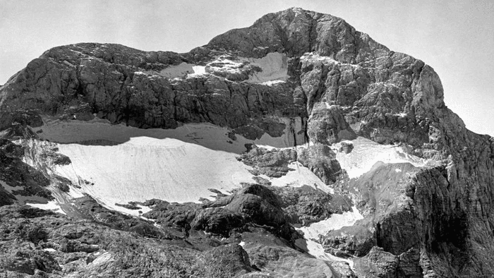 Triglavski ledenik z Begunjskega vrha leta 1954, ko je meril še več kot 10 ha.
